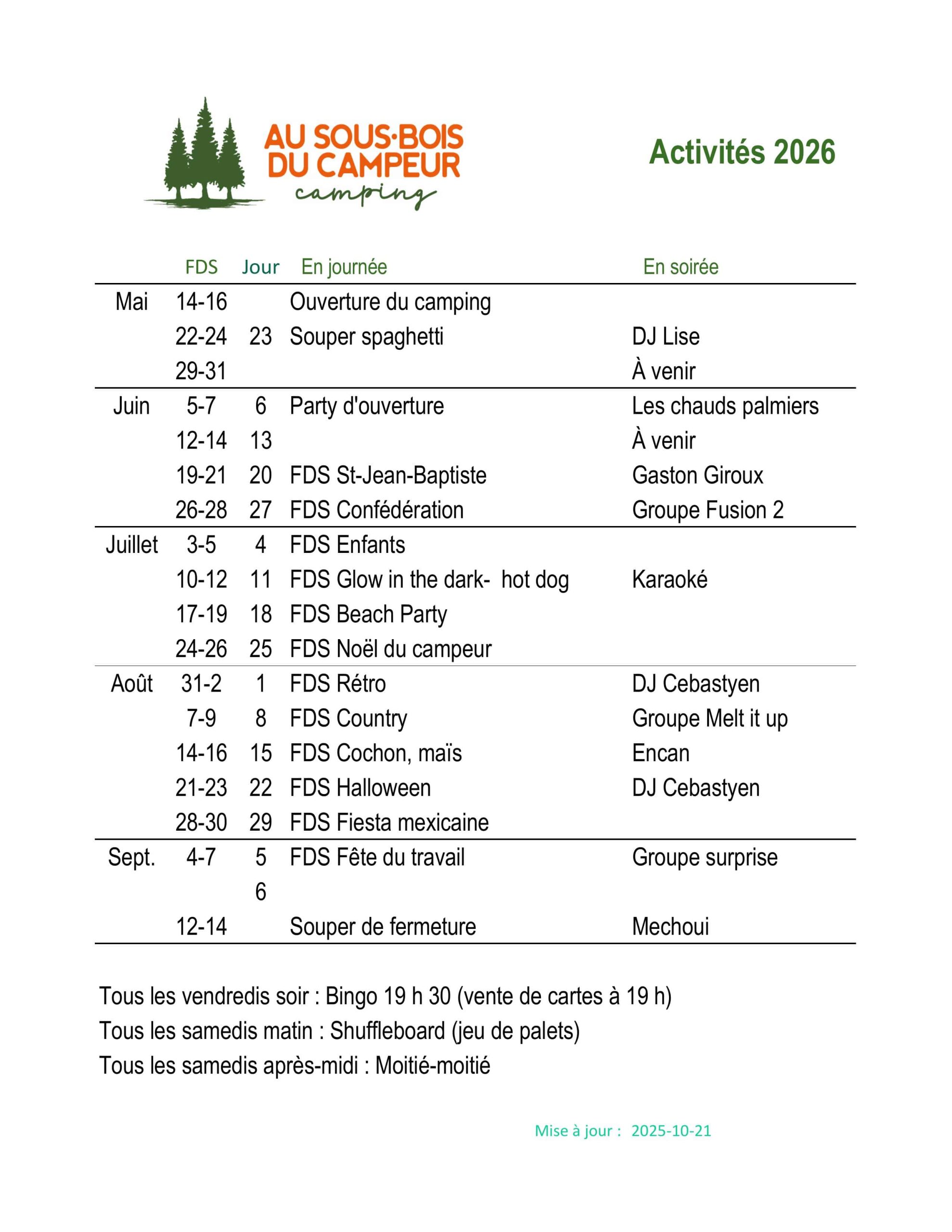 CAMPING FAMILIAL À LÉVIS – NOUVEAUTÉS